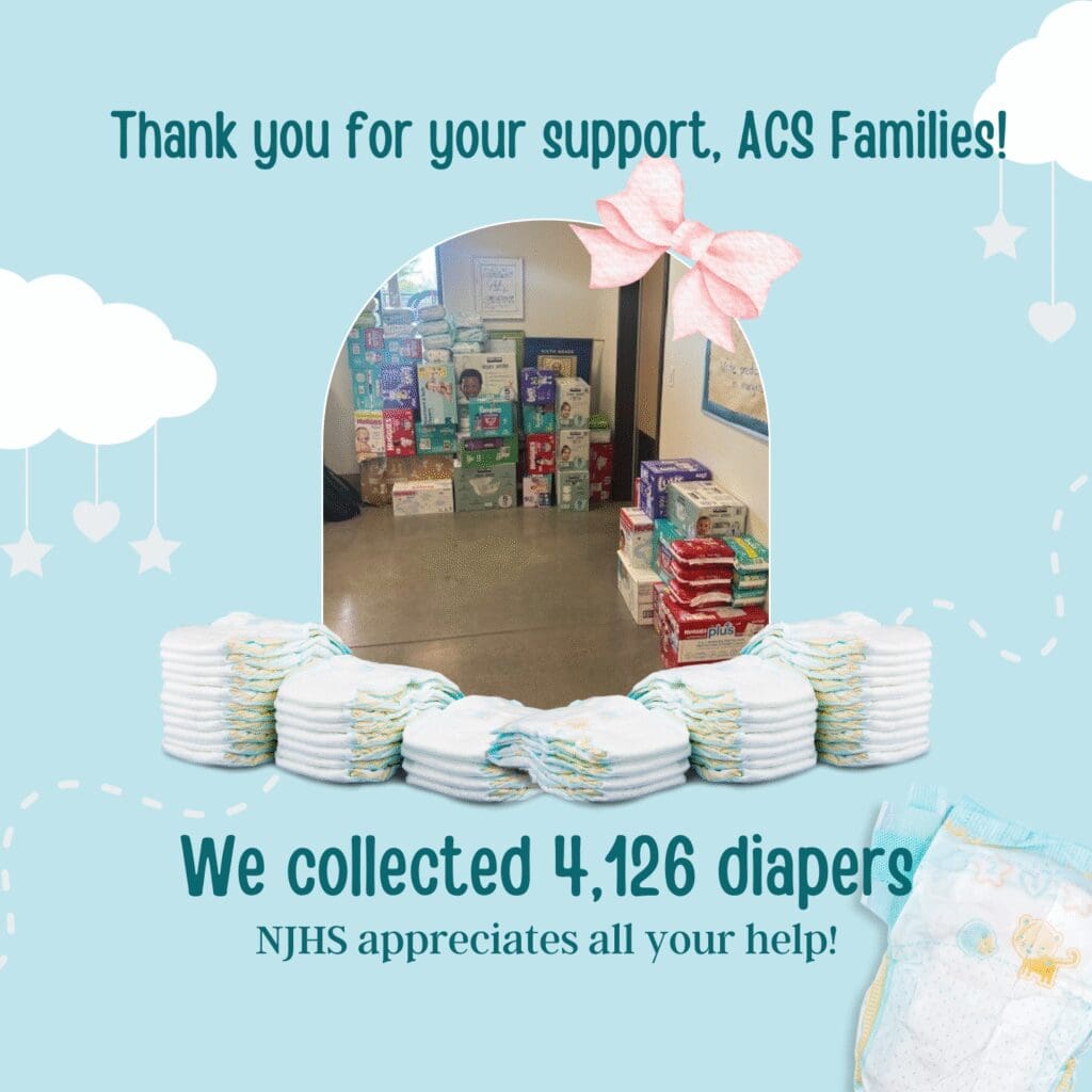 The ACS National Junior Honor Society appreciates your support in donating thousands of diapers to help the Phoenix Rescue Mission!